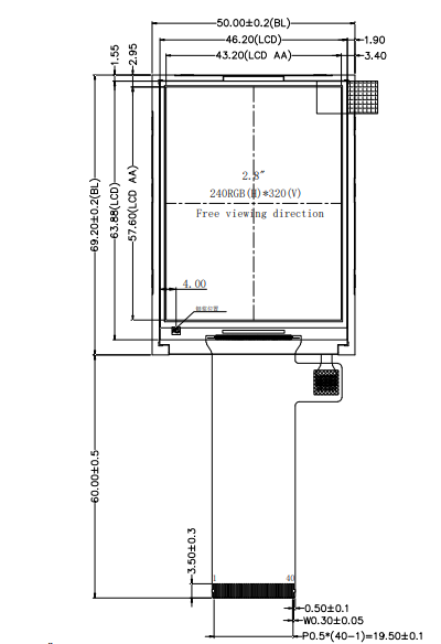 Active area : 43.2*57.6mm